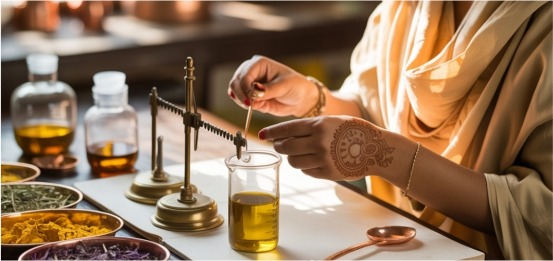 Each formulation is mixed to Ayurvedic proportions, balanced by lab-validated potency tests and measured using precision dispensers.